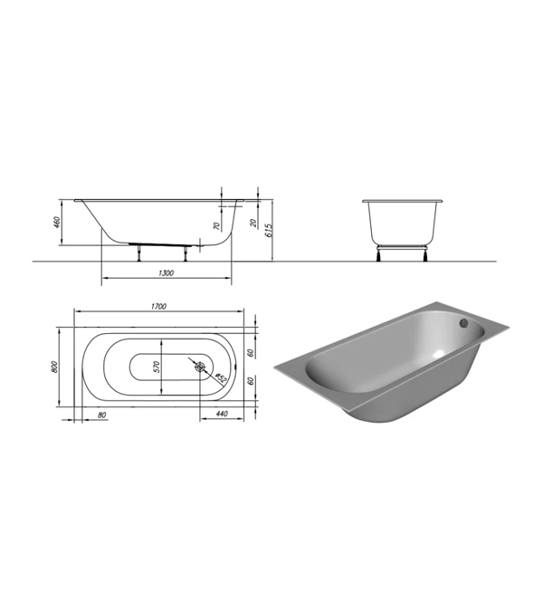 Акриловая ванна Kolpa Betty 170x80, c ножками
