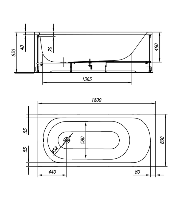 Акриловая ванна Kolpa Betty 180x80, c ножками