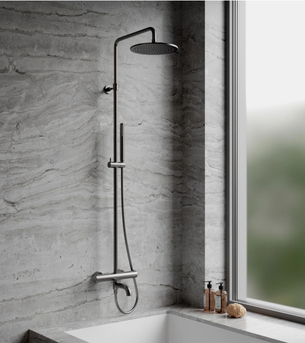 - верхний душ латунный, размер: ø25 см, отдаленность от стены: 42 см
