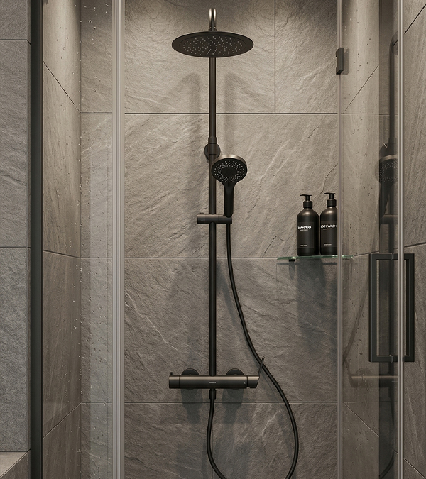 Система оснащена однорычажным смесителем с плавной регулировкой температуры и расхода воды, а встроенный переключатель позволяет удобно управлять потоком между верхним душем и ручной лейкой. Душевой стойка регулируется по высоте, благодаря чему ее удобно адаптировать под рост пользователя и особенности пространства. Надёжные материалы и скрытая конструкция обеспечивают долговечность и визуальную аккуратность интерьера ванной комнаты.