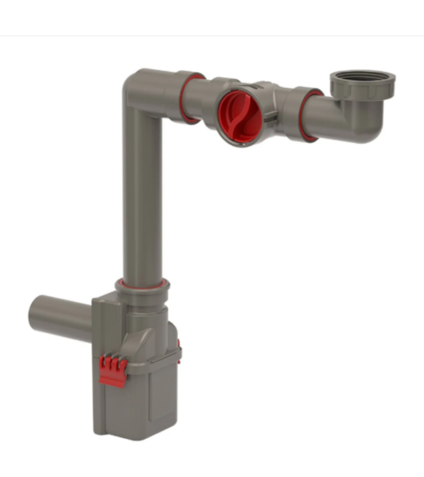 С этим сифоном уход за системой слива становится лёгким и удобным, а риск засоров значительно снижается.