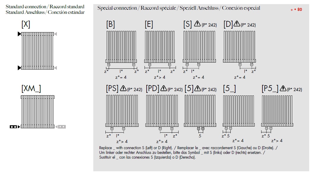 Радиатор оснащён двумя коллекторами диаметром 35 мм, к которым приварены элементы диаметром 25 мм каждый. Элементы привариваются под прямым углом к коллектору с использованием проекционной сварки, при которой расплавленный металл соединяет детали без добавления дополнительных сплавов.
