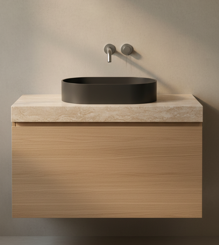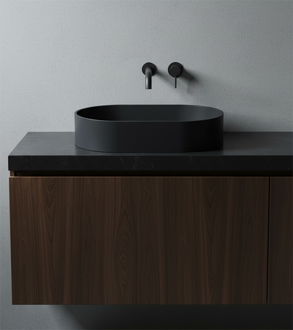 OVO цвета Black Lava – умывальник выразительного черного оттенка с бархатистой на ощупь матовой поверхностью.