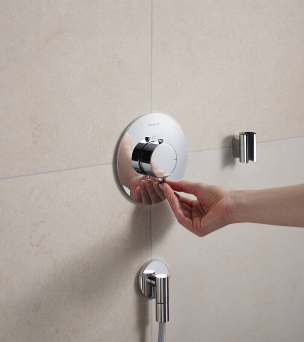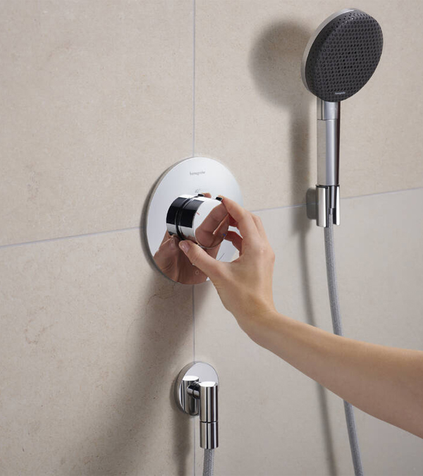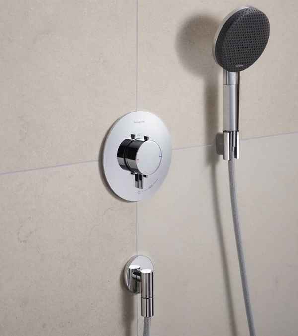 Термостатический смеситель Hansgrohe — это современное и надёжное решение для скрытого монтажа, предназначенное для управления одной точкой подачи воды, например душем. Он обеспечивает стабильную температуру независимо от перепадов давления в системе, что делает использование душа максимально комфортным и безопасным.