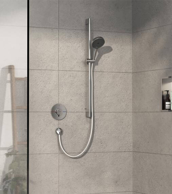 Термостатический смеситель Hansgrohe — это современное и надёжное решение для скрытого монтажа, предназначенное для управления одной точкой подачи воды, например душем. Он обеспечивает стабильную температуру независимо от перепадов давления в системе, что делает использование душа максимально комфортным и безопасным.