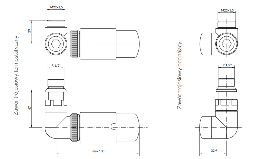 Вентиль трехосевой термостатический