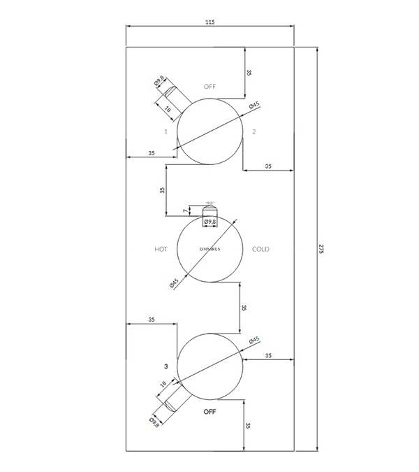 Y | Baterie pentru cada si dus încorporată cu 3 cai cu finisaj crom lucios si actionare termostatata.
