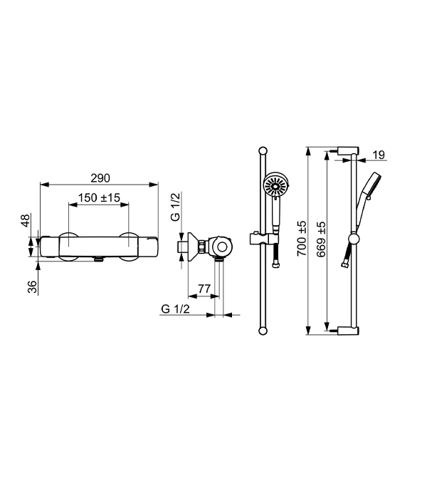 - setul include: Duș de mână; bară pentru duș; suport reglabil pentru duș; furtun de duș de 1500 mm