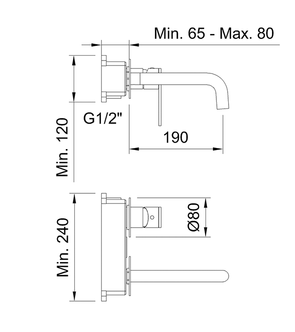 Baterie pentru lavoar din perete Clever Nexus, negru mat