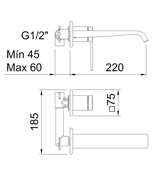 Baterie pentru lavoar din perete Clever Velvet, negru mat