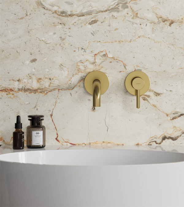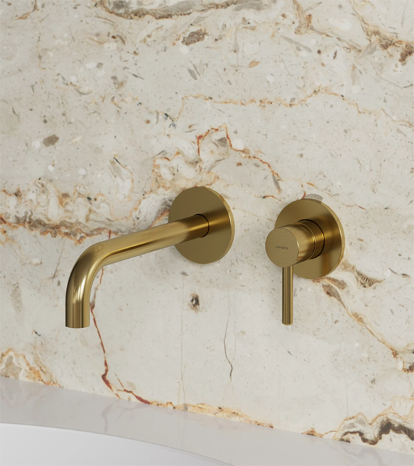 Baterie pentru lavoar din perete Omnires Y, aur periat