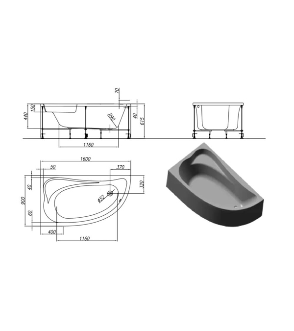 Cada de colț încorporabilă, cu finisaj și scaun. Liniile sale fine și curate creează un design elegant.