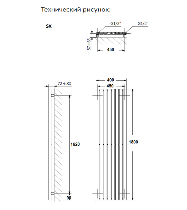 Calorifer Terma TRP 1800х490mm, Metallic Black