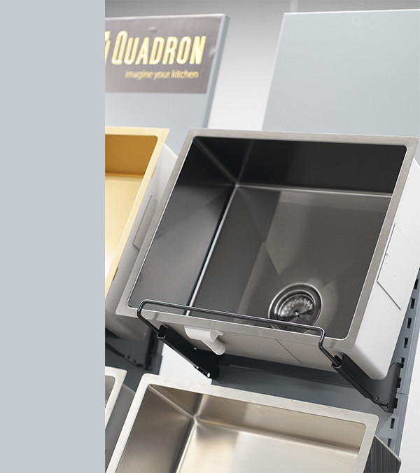 Produsele Quadron, datorita utilizarii materialelor de inalta calitate SteelQ supuse rafinarii PVD, asigura un aspect modern si longevitatea produsului. Acestea sunt usor de curatat, rezistente la temperaturi ridicate (oale fierbinti) si la schimbarile bruste de temperatura atat de frecvente in bucatarie (apa calda si rece), precum si la agenti chimici si la multe tipuri de depuneri (de exemplu, de la cafea sau ceai).