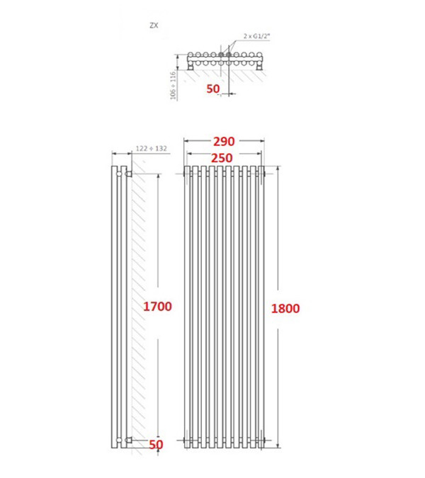 Radiator Terma Tune VWD, 1800x290 mm, Heban