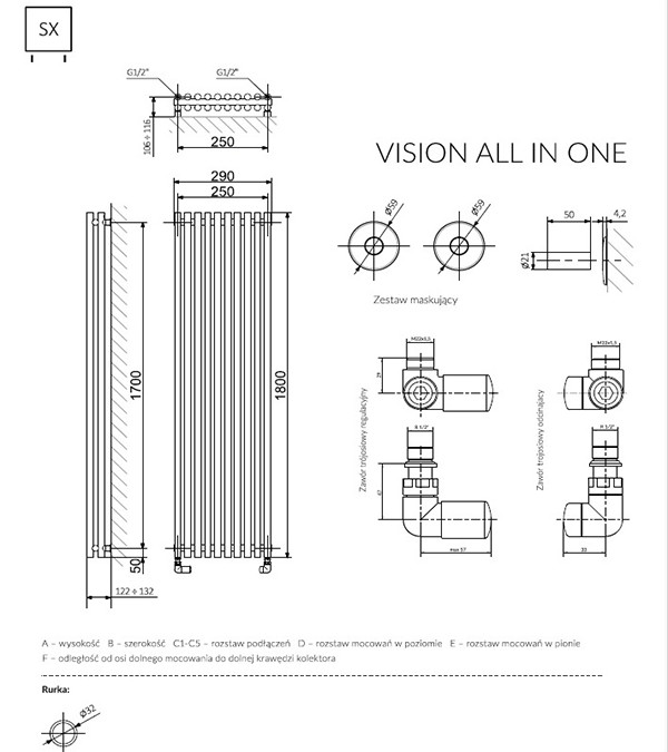 Setul de robinete TGERVISILKINB, în culoarea încălzitorului electric, este disponibil separat și se achiziționează opțional.