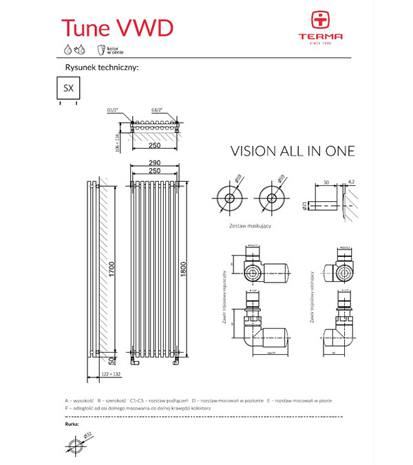 Designul elegant al radiatorului Terma TUNE VWD cu încălzire pe apă reprezintă rafinamentul formelor și originalitatea compoziției.