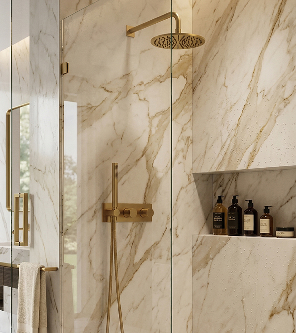 Set de duș încorporat Omnires Contour, aur periat