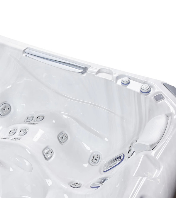 Cuva spațioasă permite acomodarea confortabilă a întregii familii sau a unui grup de prieteni, iar locul tip șezlong oferă relaxare completă cu efect maxim de hidromasaj.