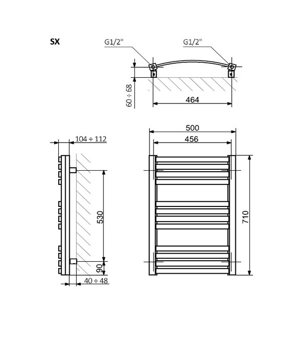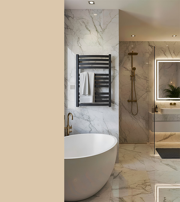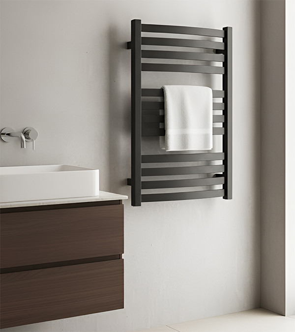 Modern și elegant, uscătorul de prosoape TERMA GAMA 710/500 cu conectare inferioară SX, culoarea Metallic Grey, este perfect pentru băi mici, oferind în același timp încălzire eficientă.