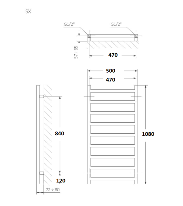 Uscator pentru prosoape Simple, 1080x500, alb lucios