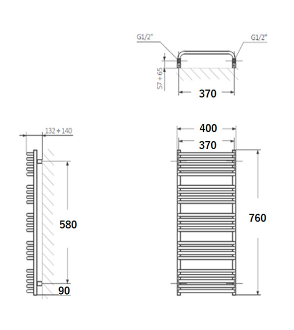 Uscator pentru prosoape Terma ALEX, 760x400, alb mat
