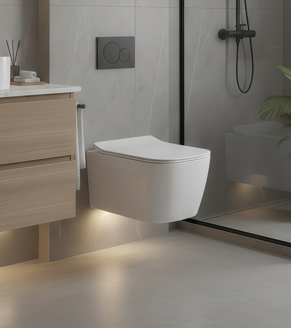 Designul fără margini permite prevenirea acumulării bacteriilor și murdăriei pe suprafața interioară a vasului și asigură curățenia și igiena în utilizare. Datorită construcției suspendate, viceul are dimensiuni compacte și nu ocupă mult spațiu în încăpere, iar spațiul liber de sub vas face curățarea băii mult mai ușoară.