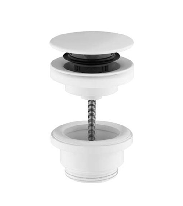Ventil click-clack universal pentru lavoar, de origine italiană, în elegantul alb de la CGS. Ideal pentru lavoare moderne de baie, asigură utilizare ușoară și funcționare fiabilă.